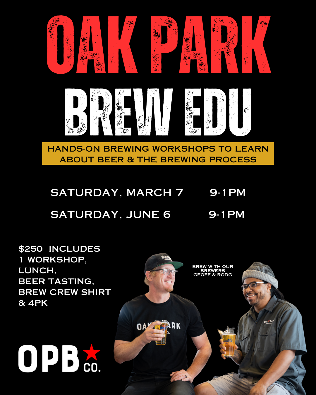 Learn how to brew beer from the OPB brewers Rodg and Geoff. Join us for a brew day and participate in the brewing process from start to finish. There are 2 different workshops March 7 and June 6. They are each $250.